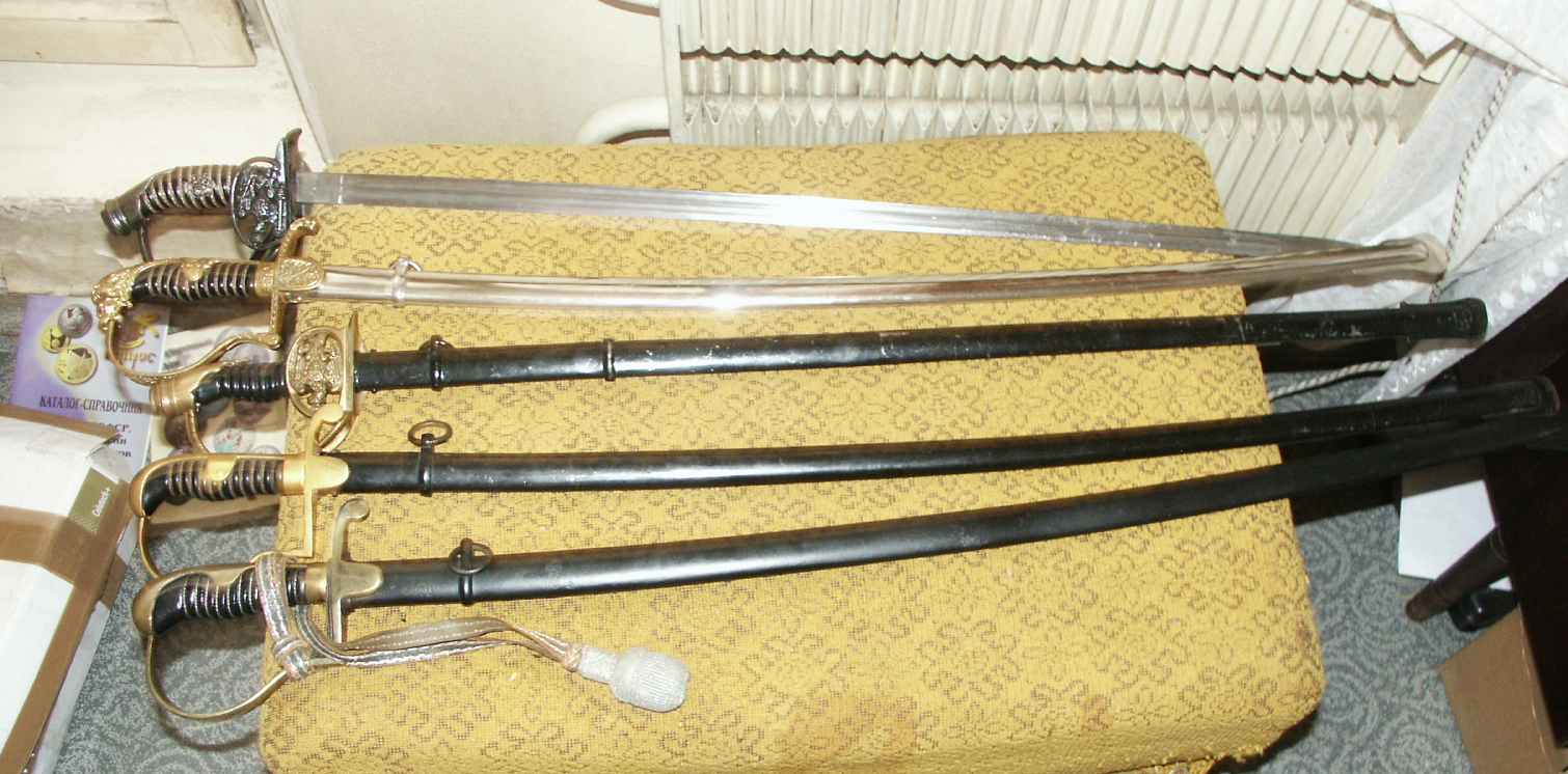 Сверху вниз - палаш, ножен нет, остальное - в очень хорошем состоянии, старт - 10000+пересыл, блиц - 14000, пересыл включен.