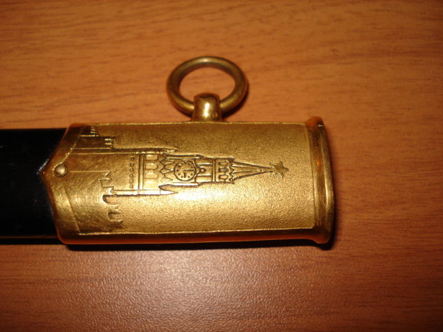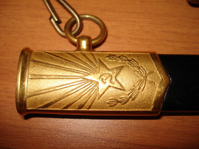 На первой фотографии на конце ножен не вмятина, а немного потерто покрытие. Вживую практически не заметно. Все детали родные!