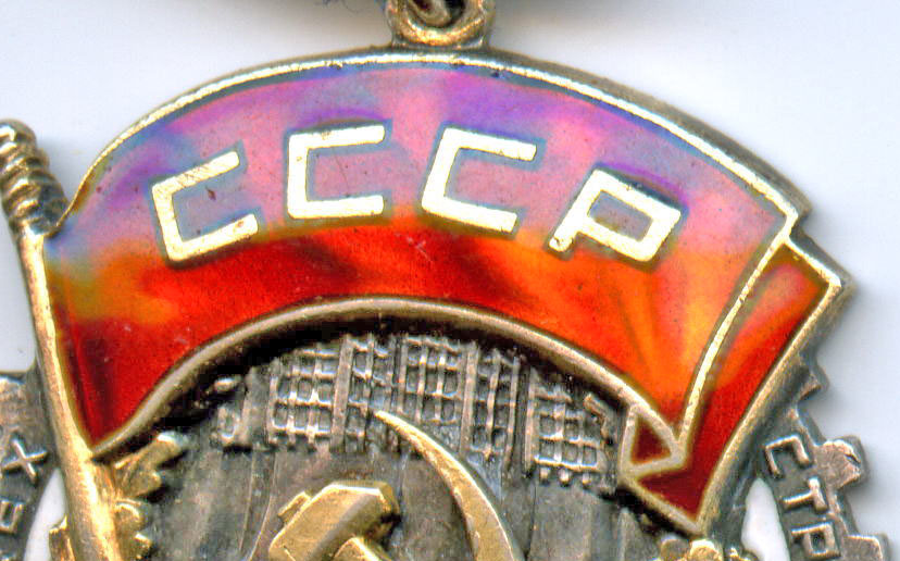 На эмали мелкие чешуйки по краю знамени.