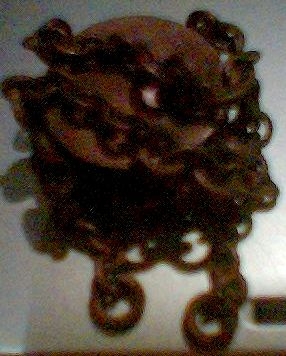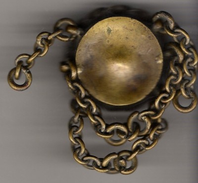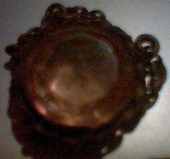 как мне сказали, сам не понимаю, фото сделать лучше не могу, все цело - цепочки, окантовка витая по борту, стеклышко и вообще бронза или медь корпуса, предлагайте без издевательства:)