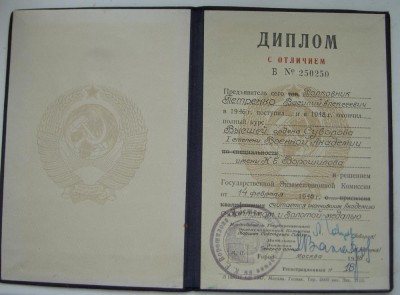 Сталина из всех золотых медалей по окончанию высших военных академий.