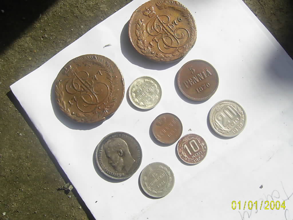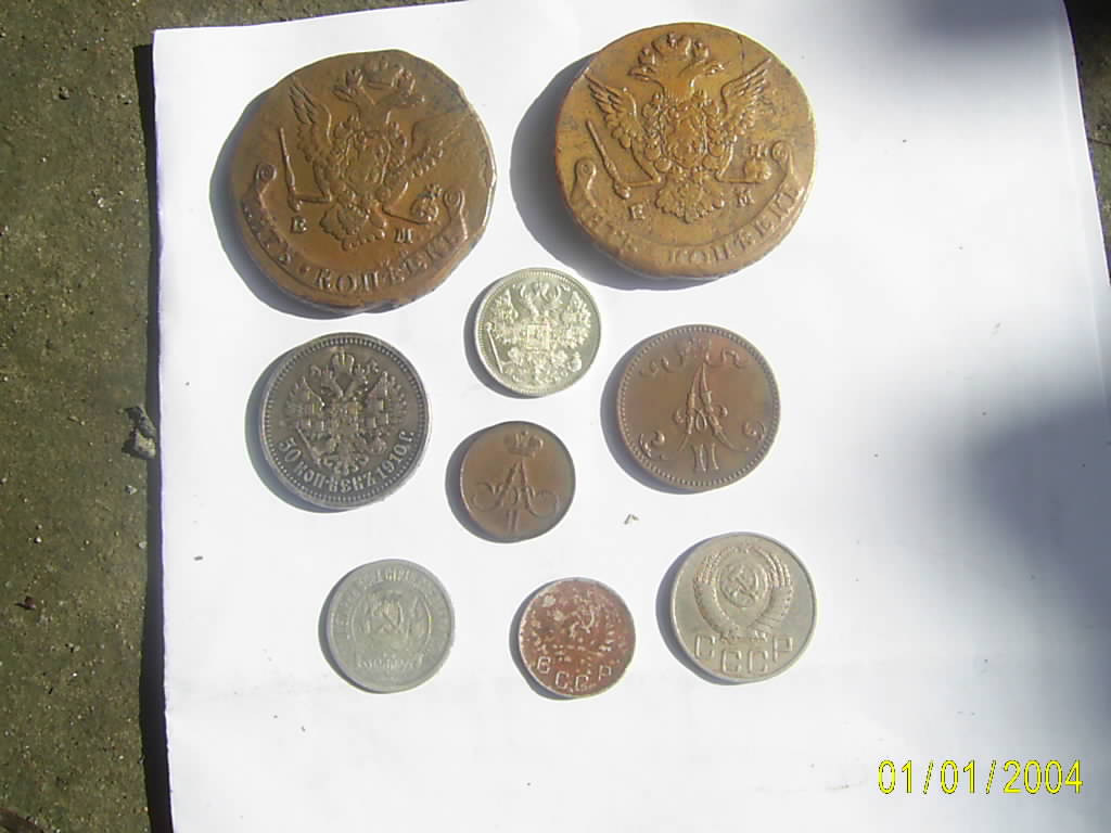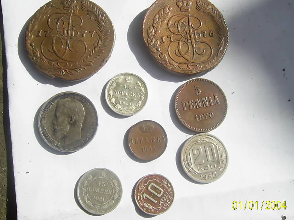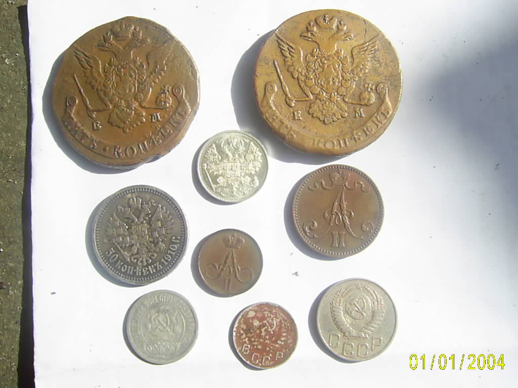 Снимки сделаны на солнце - тень слева от монет.