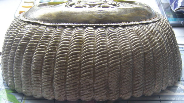 Скорее всего латунь серебрёная,накладка и пуговица серебряные.
