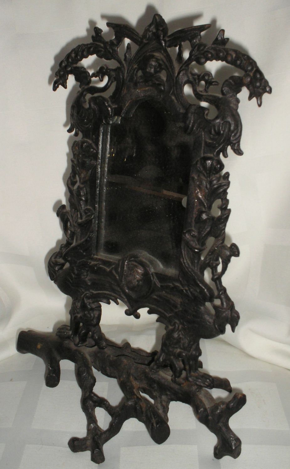 вообще то по каталогу фоторамка, но зеркала тоже бывали, в данном случае зеркало, высота 32см, на кусинской бытовухе клейма чаще не ставили, чем ставили, на этой тоже не нашёл, состояние отличное, данная модель отливается с царских времён.