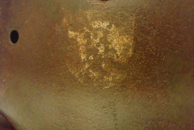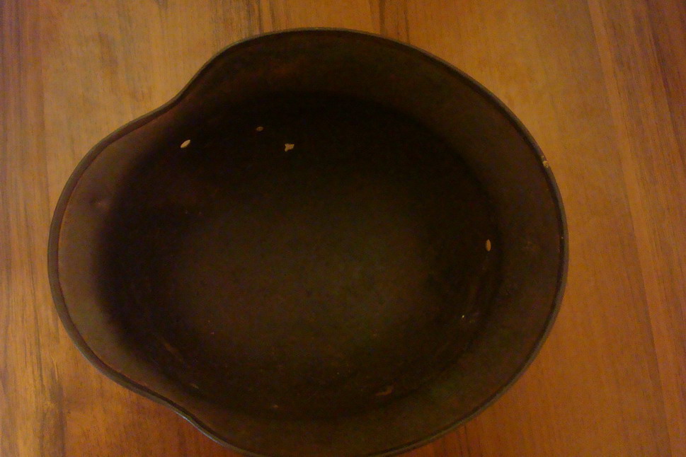 М-35, железо, завальцовка, вентиляция в суперовом сохране - хоть сейчас на войну ! Клейма : ЕТ 66 (пробито два раза), и на затылке - 3051. Тяжёлая ! Процентов 60 родной краски. А самое приятное - потёртая декалька с правой стороны - орёл полиции рейха. Слева - тоже остатки декали - триколор.