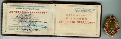 Re: ПОЧЁТНЫЙ МЕТАЛЛУРГ № 349 ЗАГУЛЯЕВ Т.Н. ДОКУМЕНТ 1949г. Стас-С - 22 апр 2009 00:35.09 × Мини профиль пользователя Стас-С Звание: RIP Сообщения: 6910 Зарегистрирован: 29 мар 2006 10:51.59 Откуда: РФ Статус: Не в сети - 22 апр 2009 00:35.09 #1447913 3000 Куплю МЕДАЛИ и ЗНАКИ : ЧЕМПИОН \ ПЕРВЕНСТВО СССР \ ЗА ВСЕСОЮЗНЫЙ РЕКОРД ! stasphaler@mail.ru