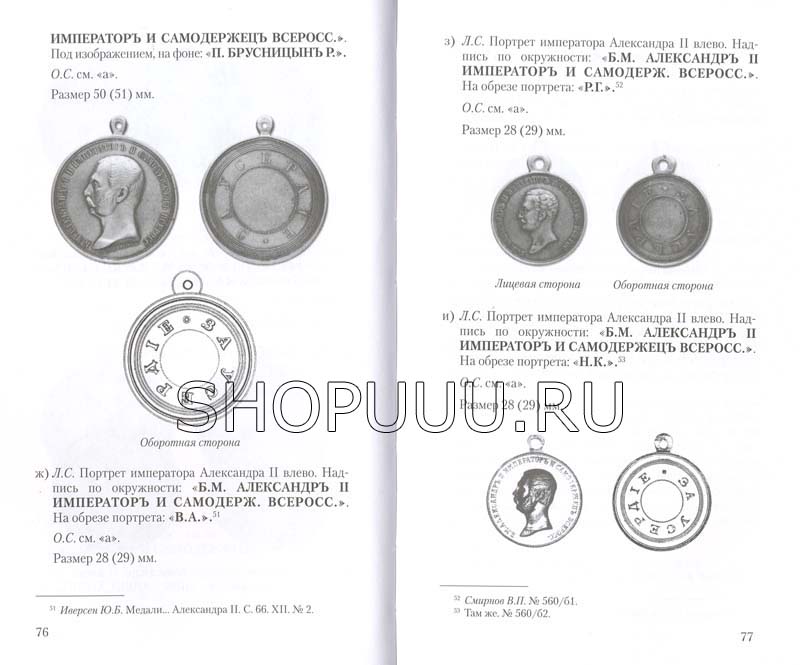 Монография рассказывает об учреждении и награждении медалями России царствования императора Александра II (1855-1881). Описано 46 наименований медалей (не считая разновидностей но размерам, металлам и степеням). Справочник является первым научным, систематическим описанием наградных медалей (для ношения на шее и па груди на орденских лентах) царствования императора Александра II. Издание предназначено для специалистов, музейных и архивных работников, а также для широкого круга коллекционеров и любителей российской истории и фалеристики.
