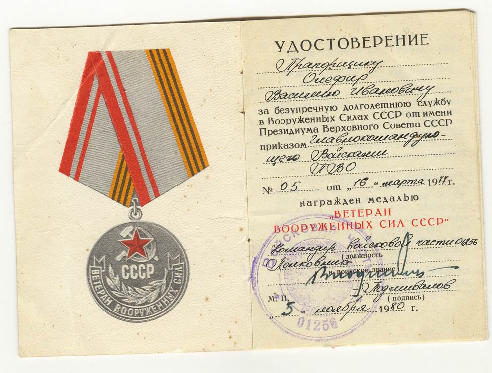 Есть еще документ к медали "Ветеран ВС" на этого же человека.