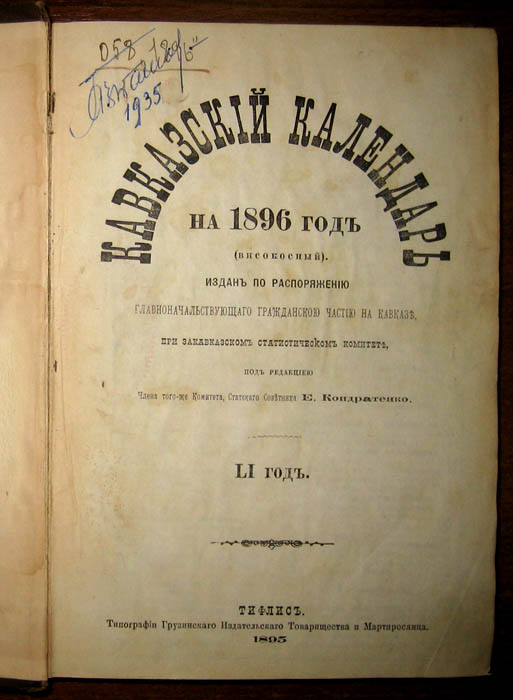 Кавказский календарь. 1896г. Т34 - 26 май 2009 19:34.42 × Мини профиль пользователя Т34 Сообщения: 9056 Зарегистрирован: 22 авг 2005 10:50.13 Статус: Не в сети - 26 май 2009 19:34.42 #1506293 532с. - 150х215мм. - тв.обл. - хорошее состояние 8750р. Фото
