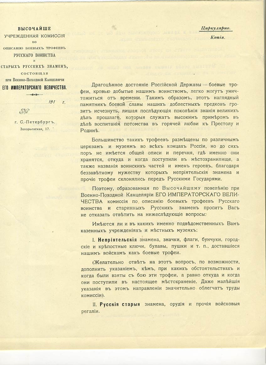 Документ комиссии по описанию боевых трофеев русского воинста.