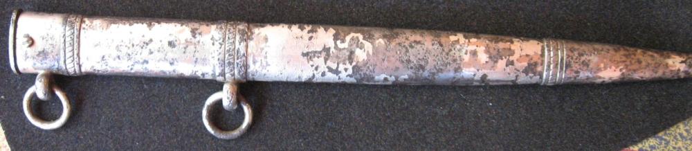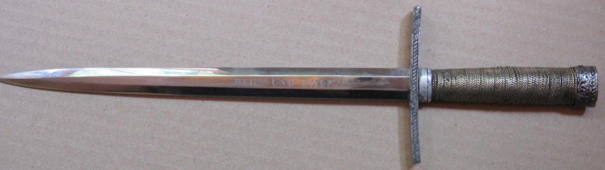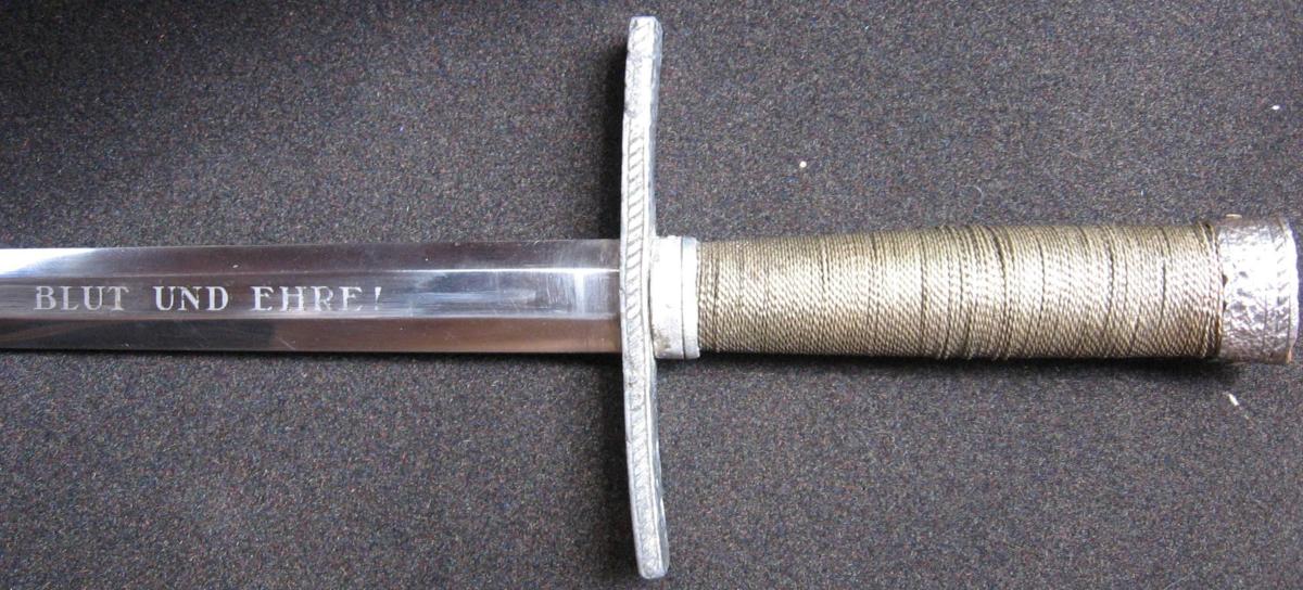 Клиное никелированный, с нанесенным с лицевой стороны девизом данной организации "Blut und Ehre!" ("Кровь и Честь!"). С оборотной стороны у основания клинка находится клеймо - RZM М 7/66.