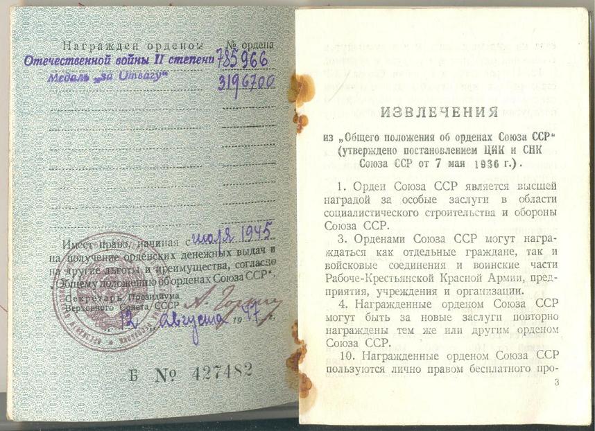 Красного Знамени, Суворова, Кутузова, Богдана Хмельницкого, Александра Невского, Ушакова, Нахимова, Отечественной Войны, Красной Звезды, Славы, За Службу Родине в ВС СССР