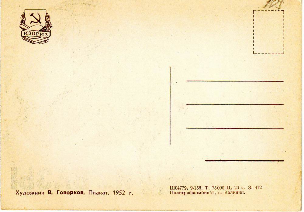 Открытка из набора "Советский политический плакат", изданного в 1957 г.