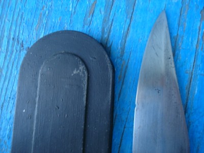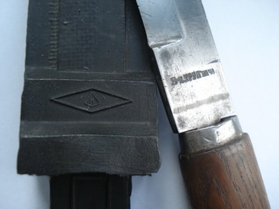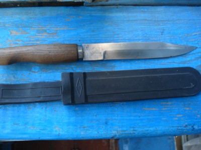 Артельный саперный нож, ножны - резина, клинок - практически одинаков с НА-40 (ну который обычно называют НР), времена стояния на вооружении - война и немножко позже...