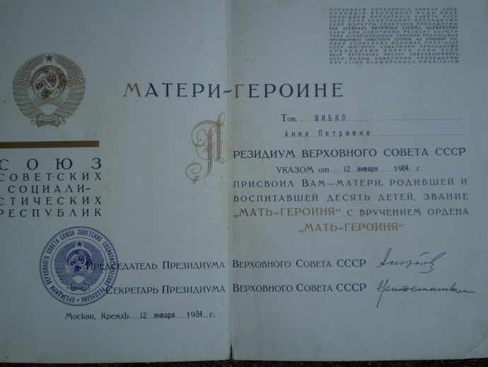 Ленина, Октябрьской Революции, Знак Почёта, Дружбы Народов, За Личное Мужество, Трудового Красного Знамени, Трудовой Славы, Мать-Героиня, Материнская Слава