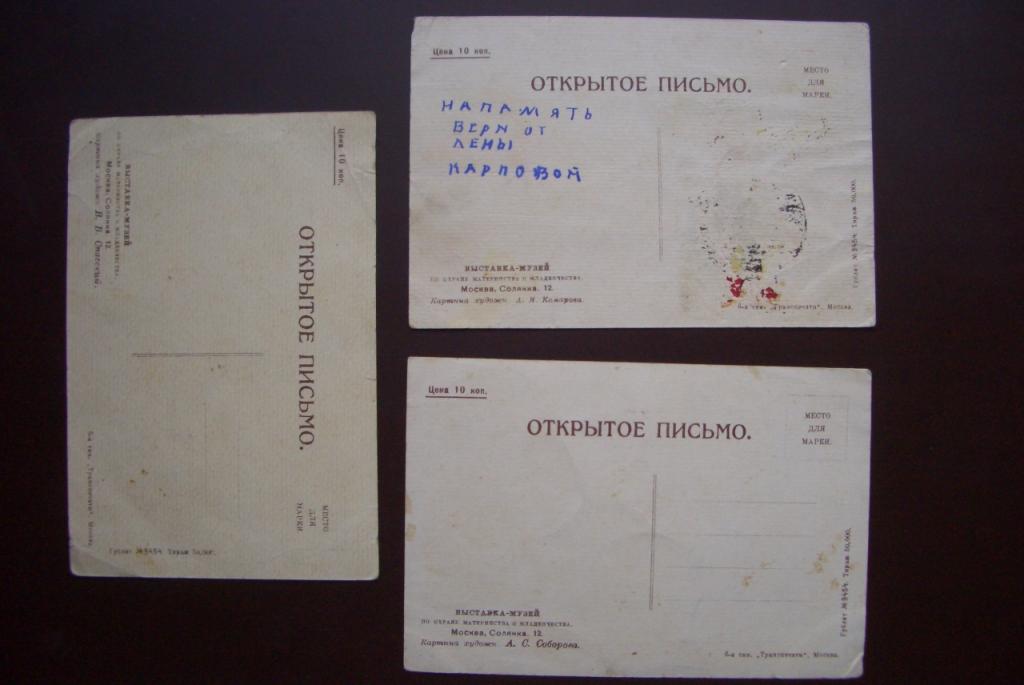 Есть 3 открытки Выставка-музей по охране материнства и младенчества. Старт 2000 р.
