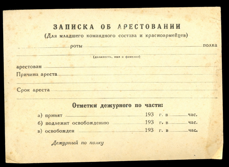 Re: Интересная справка!!!! Alex95 - 25 авг 2009 14:37.08 × Мини профиль пользователя Alex95 Сообщения: 5847 Зарегистрирован: 17 фев 2009 16:45.09 Откуда: оттуда Статус: Не в сети - 25 авг 2009 14:37.08 #1652893 Записка об аресте. Прикольно. Сейчас даже "красноармейцев" на "губу" не сажают))))) Sint ut sunt aut non sint