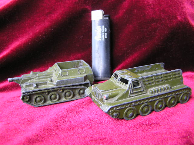 Кроме этих двух,в детстве были ещё две; танк с крутящейся башней и бортовой грузовик. (ушли в обмен)