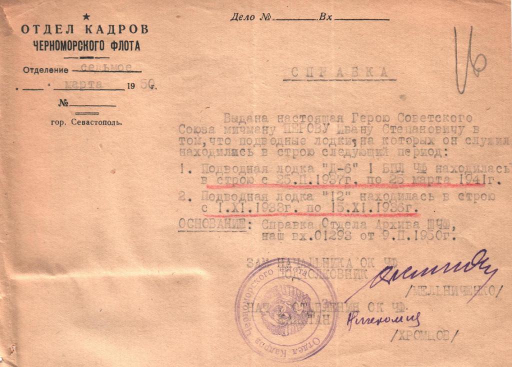 Четыре справки на ГСС-подводника