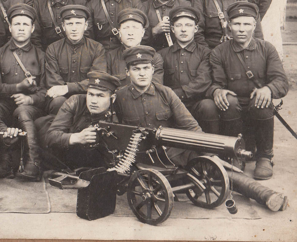 Большое 21х29см. (само фото 17х23см.)  Очень четкое. Основные шифровки 3 ОПЭ (3-й ??? Пулеметный Эскадрон). У центрального товарища шифровка "14".  У многих на петлицах знаки пулеметчиков. У всех кавалерийские шашки. Пулеметы просто красавцы!!