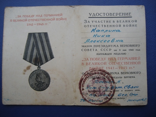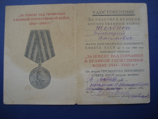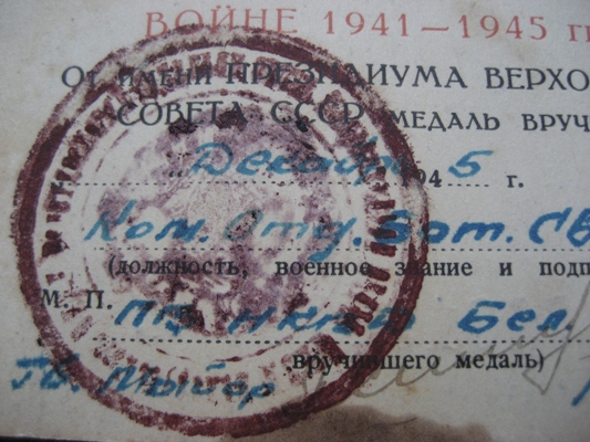 Предлагается к продаже "За победу над Германией" подпись Ком отд бат Связи ПС НКГБ Бел. Окр.