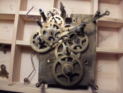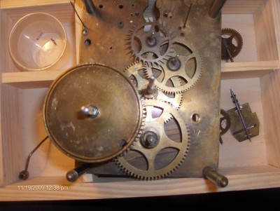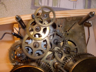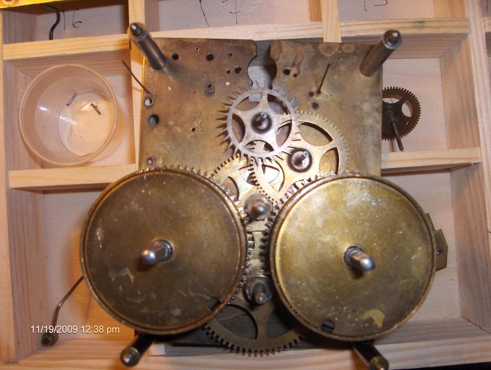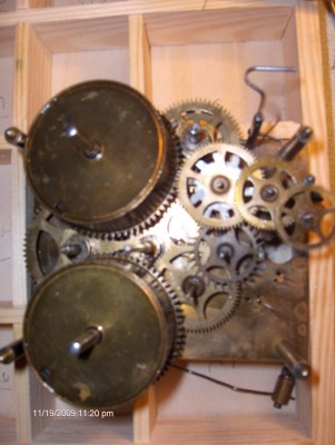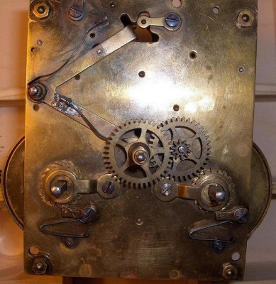 Вопрос к специалистам. Приобрел механизм часов, без корпуса, все видно на фото. Не подскажите, как они выглядели изначально, кто производитель, год изготовления. Тикают, но бой то ли сняли, то ли потеряли. Хотелось бы восстановить, так посмотреть бы, как выглядит оригинал. На механизме видны буквы DRP, т.е. Германия, как я понимаю, и цифры 17514. Спасибо