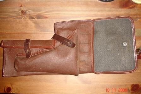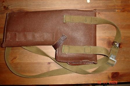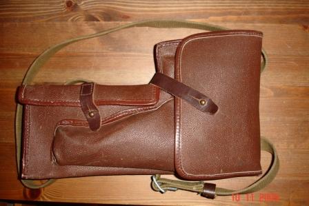 Кобура к советской ракетнице с тремя отделениями, два под 10 сигнальных патронов калибра 26мм и одно соответственно под сигнальный пистолет, материал - кирза, ремень с регулировкой длинны, клейм и маркировки не видно, состояние - склад.