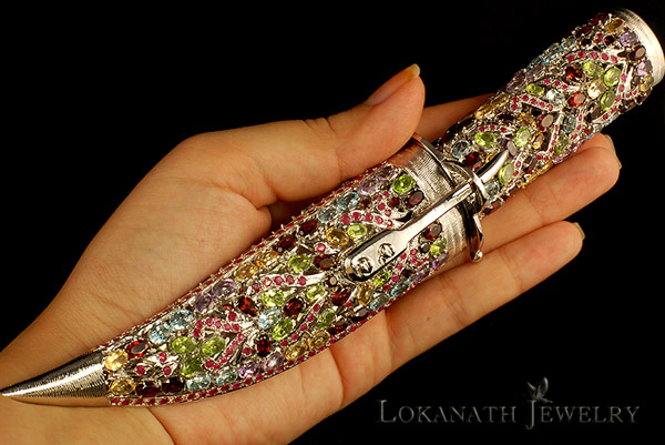 Кинжал, инкрустированный полудрагоценными камнями. 120 карат полудрагоценных камней. Прилагается оценочный сертификат. Изумительная ручная работа. Прекрасный подарок. от 30 т.р.