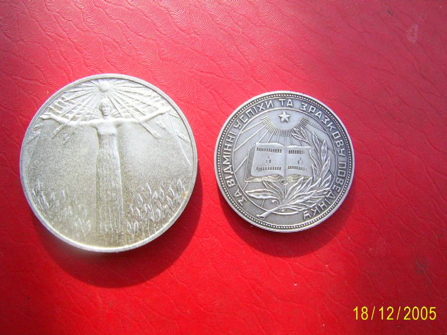 Две школьные медали- одна образца 90-х гг.