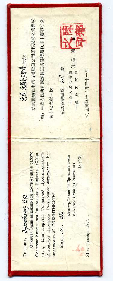 Почему медаль № 529, а документ на медаль №652 + на такие номера документы скорее подписывал Ван Хэ шоу, министр тяжелой промышленности...