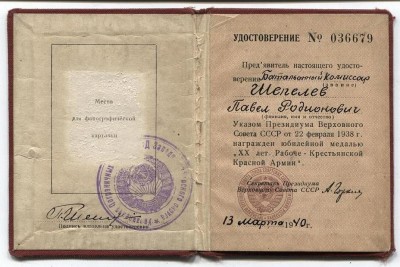 и Боевого Красного Знамени. Удостоверение к медали за Кавказ подписано Начальником управления пограничных войск НКВД