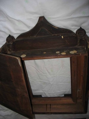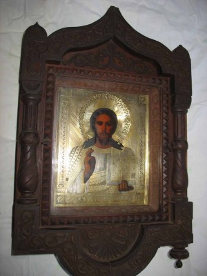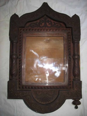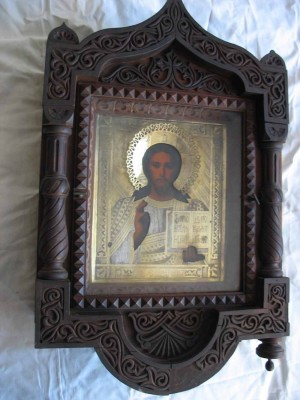 Вот такая красота.Размер иконы-27\22смСтекло-тонкое,родное,в резной рамке,вынимается.,крепёж-боковые фиксаторы-лево.\правоКиот-58\37\12см Никаких реставраций