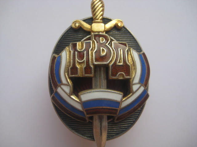 Эмалевая лента с надписью "МВД" является накладкой знака.