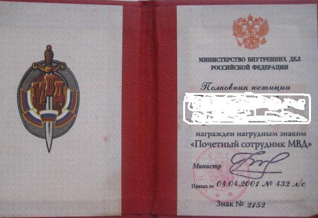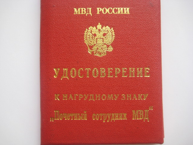 НАГРУДНОГО ЗНАКА "ПОЧЕТНЫЙ СОТРУДНИК МВД"