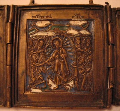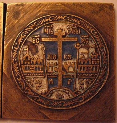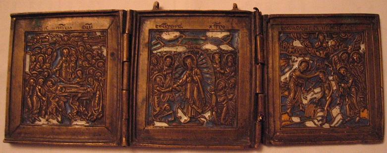 На первой створке :синий, белый.