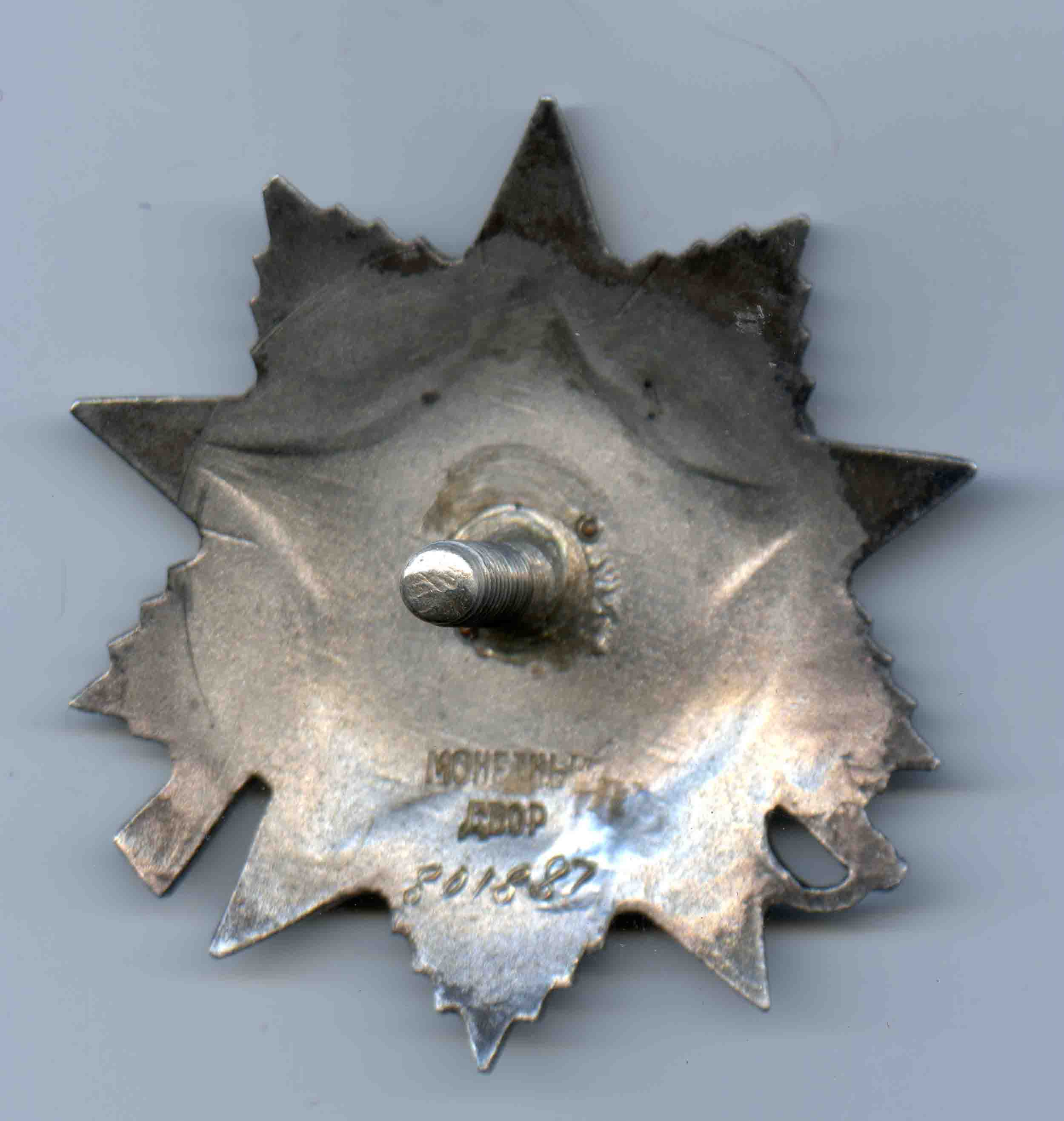 На знаке реверс звезда. На Мондворе такой разновидности не нашел. две последние цифры номера по зачищенному.