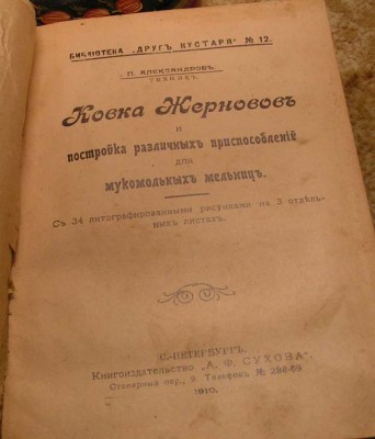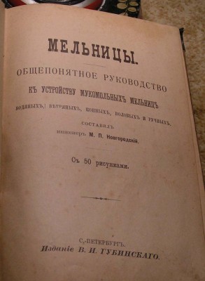 только по рф Владельческий переплет четыре книги 1) МЕЛЬНИЦЫ общепонятное руководство к устройству мукомольных мельниц водяных, ветряных, конных, воловых и ручных составил инженер М.П.Новгородский с 50 рисунками СПб изд В.И.Губинского 2) П.Александров (техник) устройство мельниц водяных ветряных козловых и шатровых с 58 русунками на отдельных 8 листах изд Сухова СПб 1911 3) П.Александров Ковка жерновов и постройка различных сооружений для мукомольных мельниц СПб изд Сухова 1910 4) п. Александров камень его добывание и обработка описание работ по выломке обделке распиловке обтеске шлифовке и полировке различных камней СПб изд Петрова 1904 состояние книги хорошее старт 500 рублей блиц 2000 без мпц шаг 100 пересылка по РФ 150 при блице за мой счет