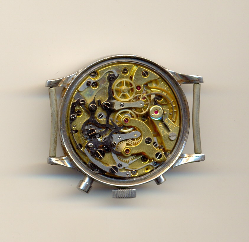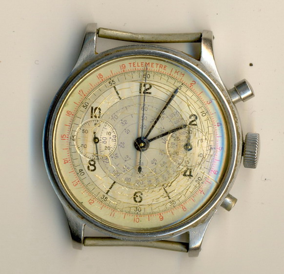 Подскажите что можно сказать по этому хронографу, размер приблизительно 37 мм, можно ли определить чьё производство, период изготовления и т.д. , ну и примерную стоимость таких часов при условии если они будут приведены в приличное состояние (профилактика, замена потрескавшегося стекла и т.д) .