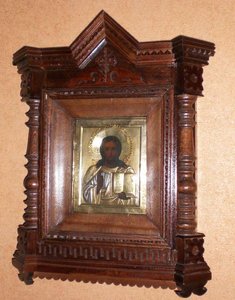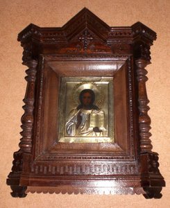 Киот современный, открывается с оборотной стороны выдвигая заднюю стенку.