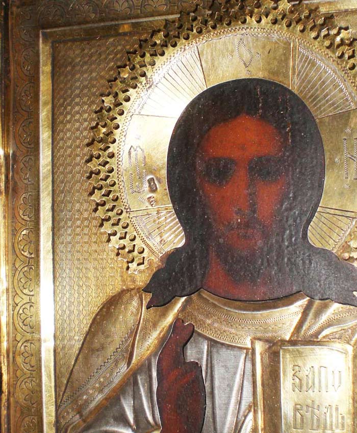 Вседержитель в окладе из серебра 84 пробы, позолота, Киот.