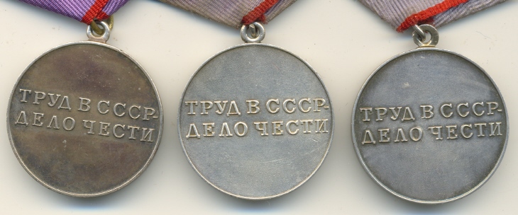 Медали Серп и Молот, За Трудовую Доблесть, За Трудовое Отличие, За Доблестный Труд в Великой Отечественной Войне,За Восстановление Предприятий Чёрной Металлургии Юга, За Восстановление Угольных Шахт Донбасса, За Освоение Целинных Земель, За Строительство БАМ, За Преобразование Нечерноземья РСФСР, За Освоение Недр и Развитие Нефтегазового Комплекса Западной Сибири, Ветеран Труда