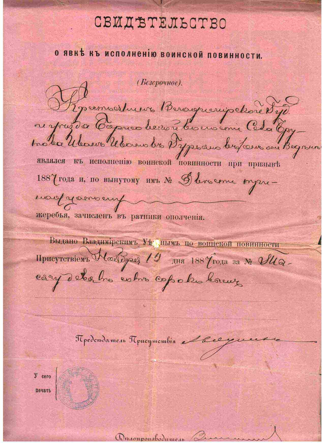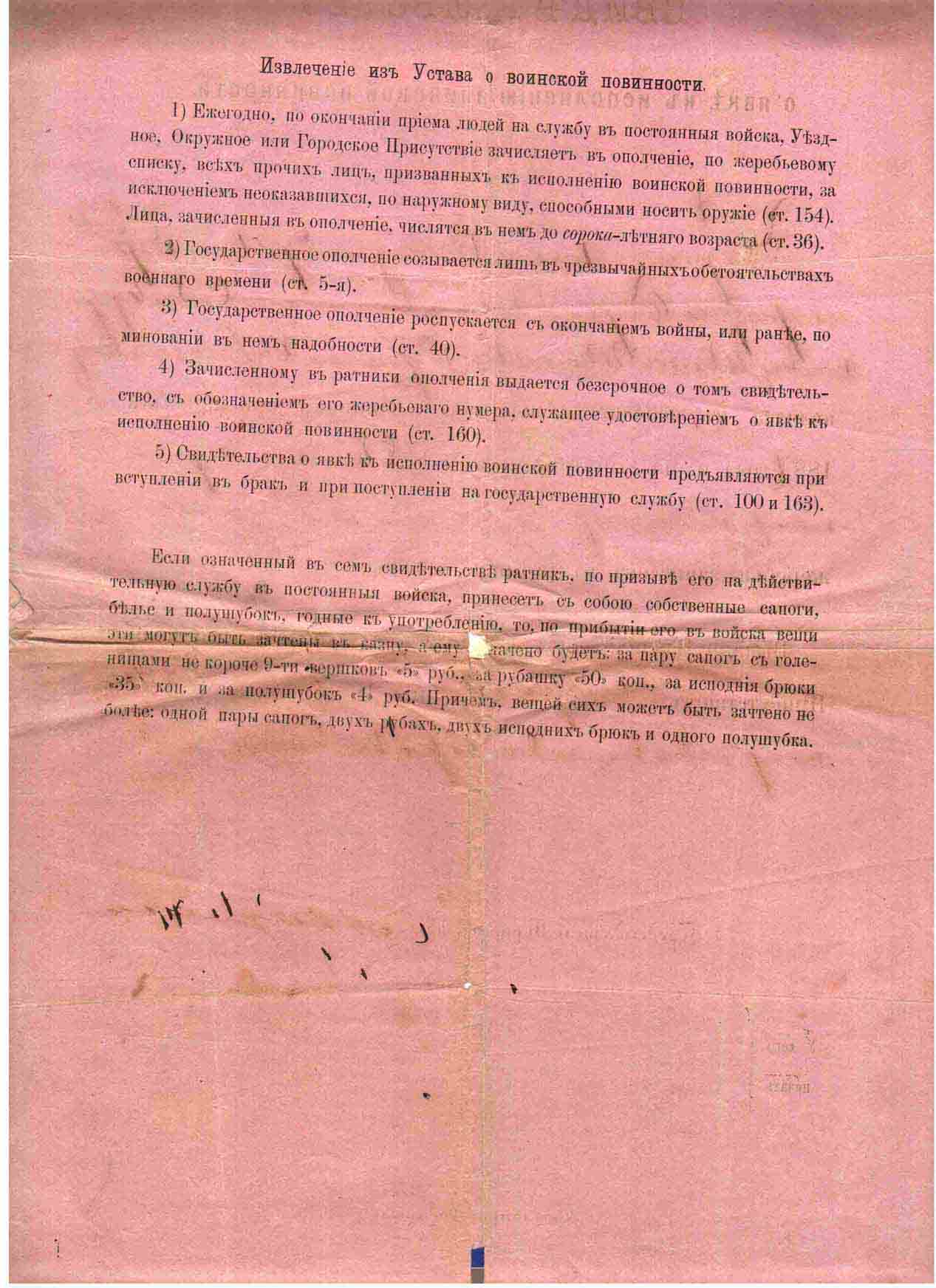 1887 год, жребий, зачёт за сапоги, рубашку, исподние брюки и полушубок