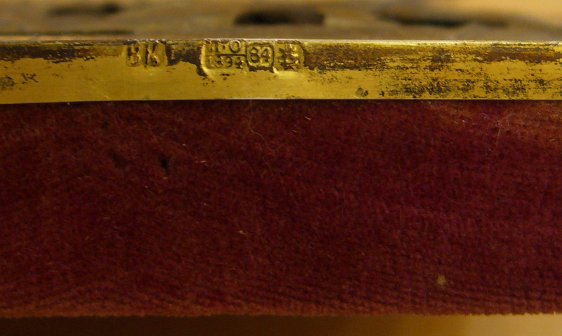 Размер самой иконы 17,5х22 см, оклад не снимался. Родной киот. Клейма на нимбе и торце оклада одинаковые. Предложите.