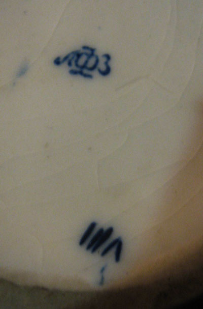 Роспись подглазурная кобальтом.