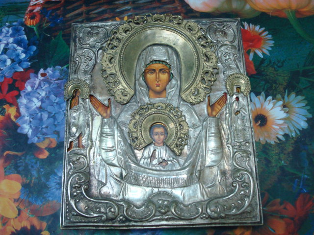 Оклад старый,19 век,икона новая,писаная в 21 веке.Высота с окладом 30 см.,ширина 25,5см.