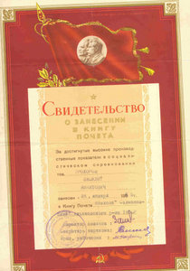 + почетная грамота на 2-х языках в красной папке, грамота от маршала Соколовского,