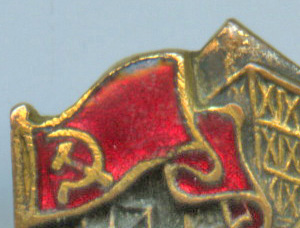 На выпуклом месте знамени легкая потертость в виде мелких царапинок.