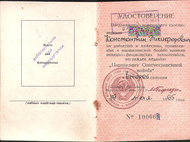 Москва. Гознак 1957г. Вручена 19 мая 1965г.