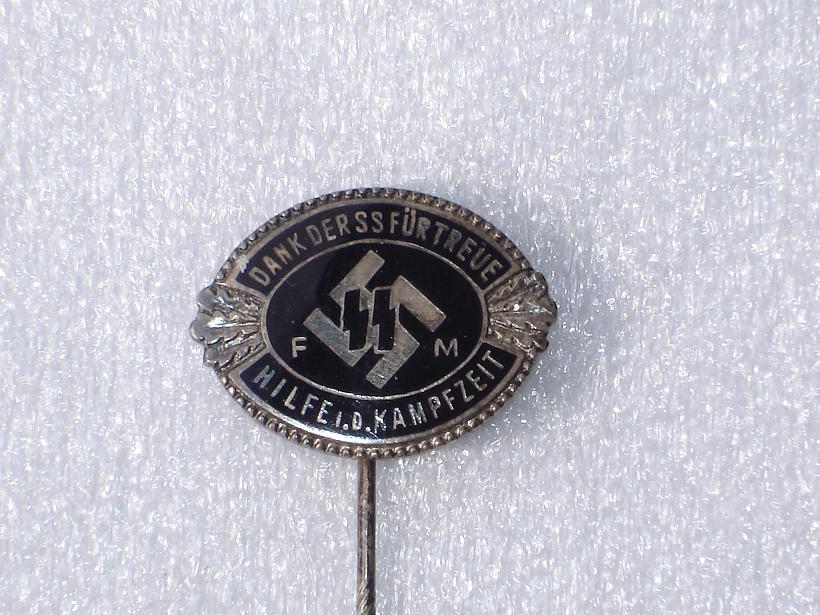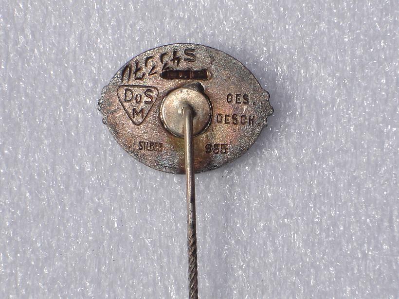 Заколка члена SS - Fördernde Mitglieder der SS /спонсора, мецената /. Изготовлена из серебра. Клеймо 935. Членский номер - 43370. Предыдущий 3-х значный номер механически удален. Клеймо фирмы производителя. Редкий экземпляр в отличном состоянии. Встречается редко - 320€ с гарантией и доставкой.