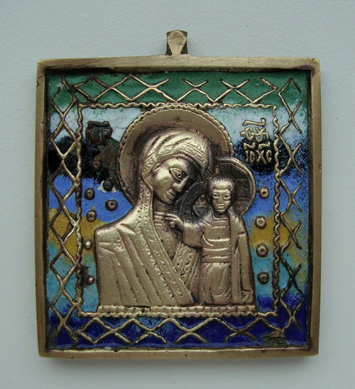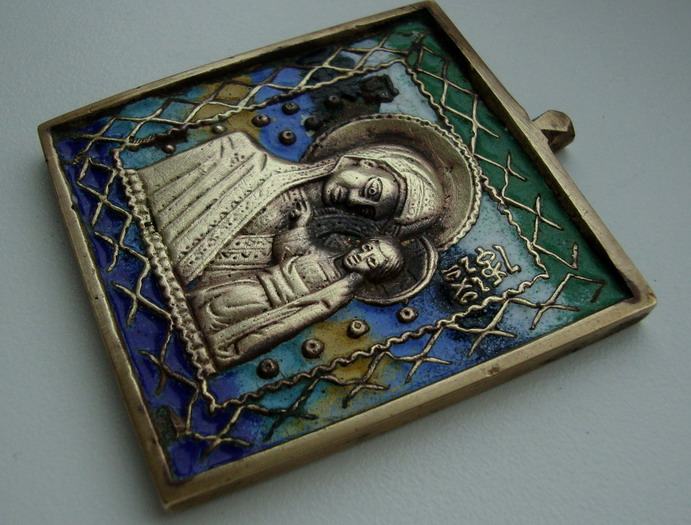 Иконка "Богородица казанская" - 7 цветов эмали, состояние на фото, есть скольчики. Раз 6 Х 5,6 см. Предложите.